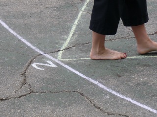 We then established a walking path (or rather, three intertwined walking paths). The first path walked the circumference sequentially, along the path do-re-mi-x-fa-sol-x-la-si-do; a clockwise direction (“x” stands for the two conscious shocks at points 3 and 6 on the inner triangle). The second walked the “seven” line according to the well-established line of direction: 1-4-2-8-5-7 (this is the decimal generated when 1, the number of wholeness, is divided by 7. While we walked it, we chanted the tune created by the assigned musical intervals: “re-fa-mi-si-sol-la” (we created a lyric to accompany this: “Walk in love, infinite”).