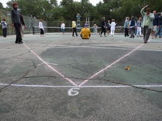 When we tried it with the entire group later that afternoon, the results were dramatic. The whole enneagram, moving in the same clockwise direction, created such a powerful unified energy field that one could literally not move against it. People finishing their walk continued to move clockwise back to their seats at the edge of the tennis court, even though is some cases that required walking 270 degrees around the circle rather than taking the direct shortcut.